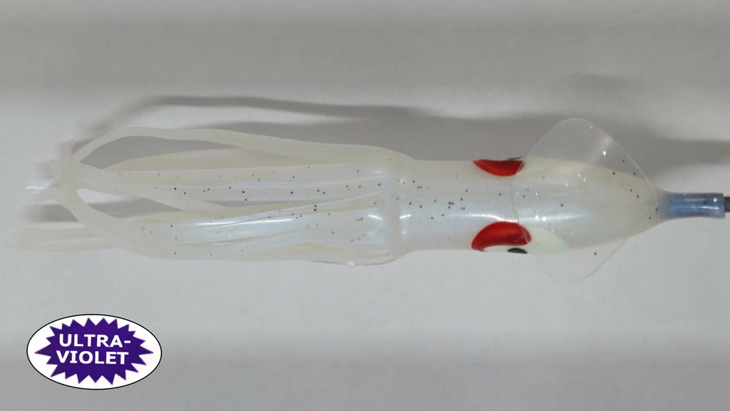 GOLDEN BAIT CUTTLEFISH 4-3/4″ SA12R – There are 5 hoochies in each pack.