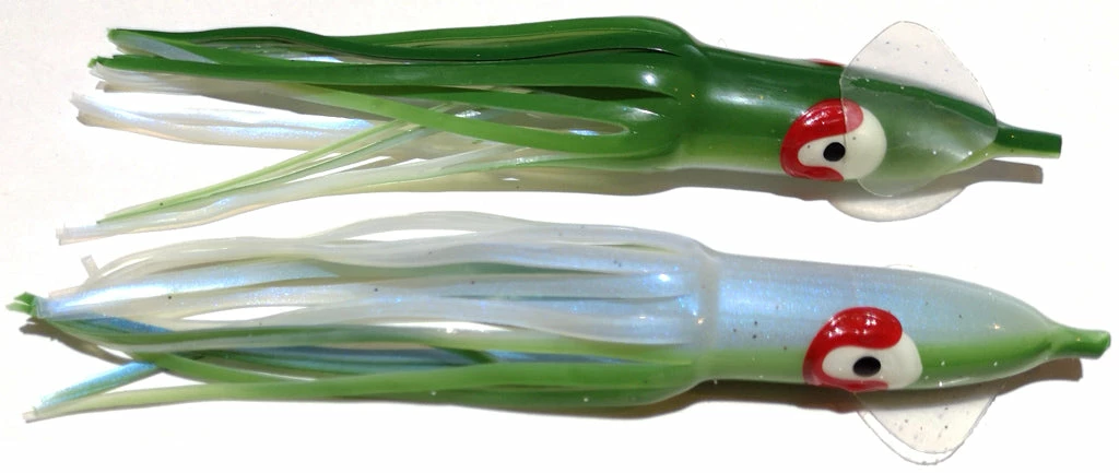GOLDEN BAIT CUTTLEFISH 4-3/4″ SA69R – There are 5 hoochies in each pack.