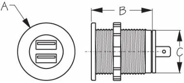 Dual USB Power Socket charges two devices simultaneously. The total output 4.8A load is split 2.4A per side as needed. Enough power to charge phones, pads, and tablets quickly and efficiently. Protective dust cap extends the life of the charger. Constructed of injection molded nylon. Installation is as easy as drilling a 1-1/8″ hole, inserting the socket body, tightening the locking nut, and connecting the wires. Also fits Sea-Dog® Power Socket Shell (426100). Output DC 5V/4.8A. Input 8-32 VDC. Blue LED illumination. IP65 rating. RoHS compliant.