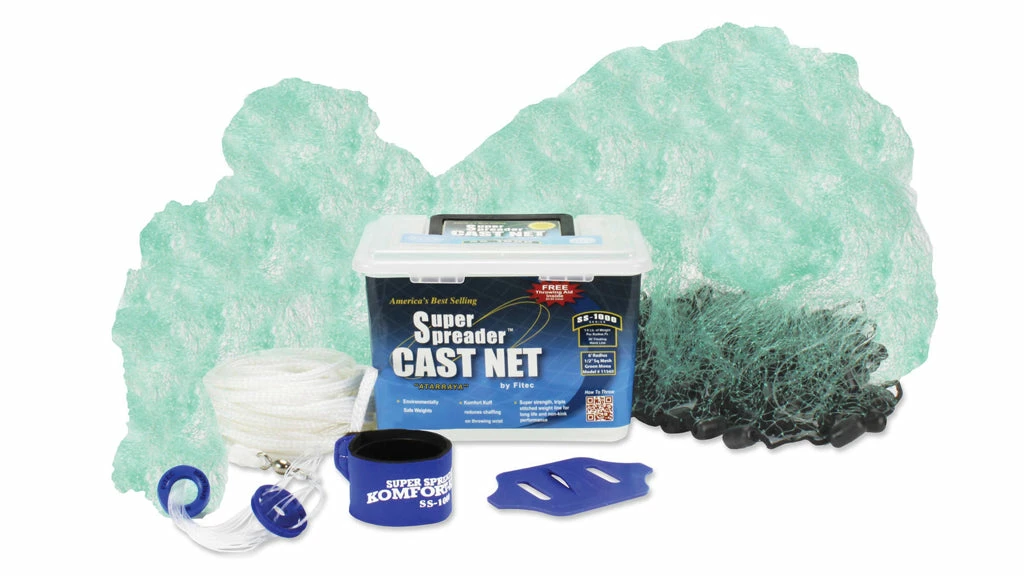 The Monofilament cast nets are incredibly durable, sink fast, and stay light. 1/4″ square mesh, 3/4lb. non lead weight per net foot. High floating 20′ throwline. Cast nets come with instructions.